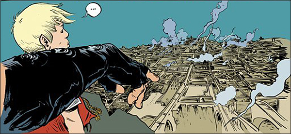 Battling Boy, the most recent work by cartoonist Paul Pope, arrived from First Second Books last year, although I was late to the party, and what a strange party it is. Pope is one of comics’ most talented renderers-of-action, but on some pages, his talents actually undermine the story he’s trying to tell. Superficially simple–the combat-novice son of a godlike warrior arrives in a land besieged by monsters–the story invites all sorts of questions about the circumstances of its creation. Pope stages a series of fights with such fluidity–virtuosity, even–that even if his reader isn’t a comics nerd who had heard mention of Battling Boy for years, the book is still likely to read as the product of countless hours of labor. And even the immersed reader might be tempted to think, ‘All this work for a genre pastiche?’